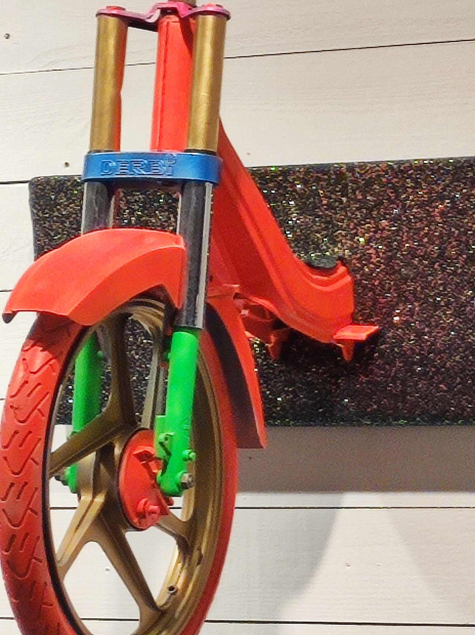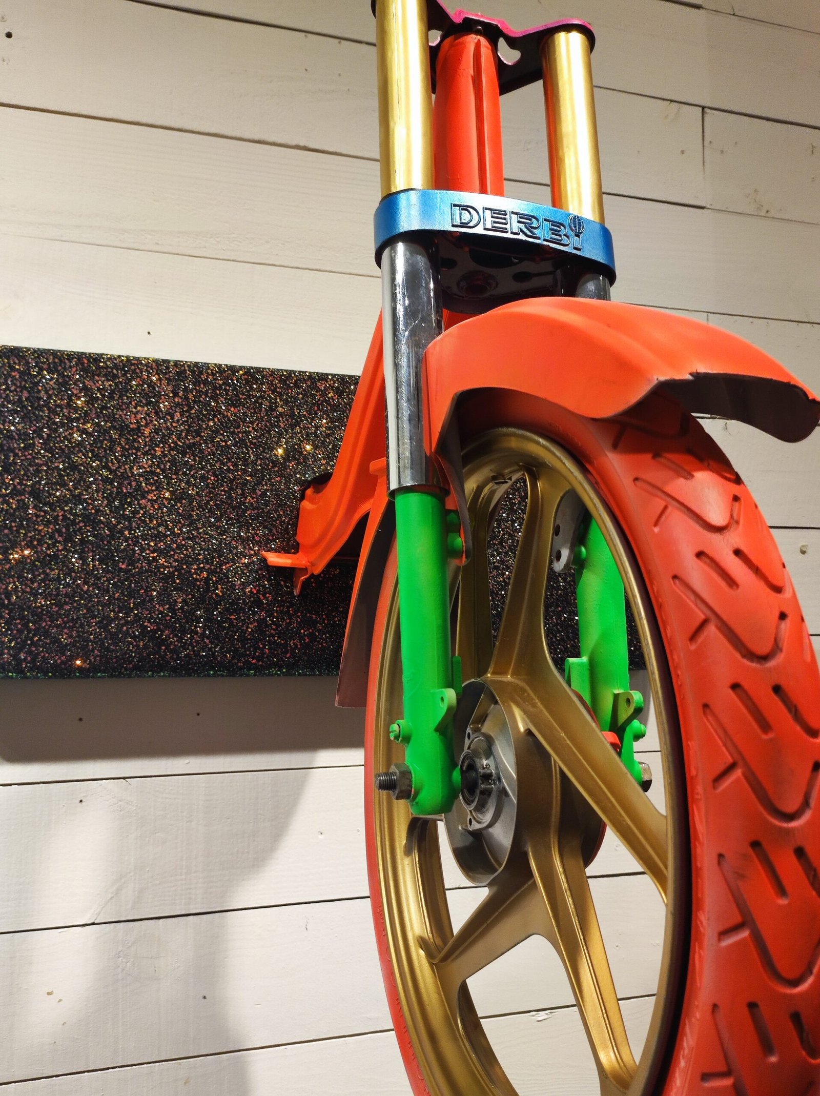 El resplandor conceptual jsus art representa la culminación del arte conceptual aplicado a la escultura moderna. Esta pieza, una media moto transformada en arte, desafía la convencionalidad y captura la esencia misma de la velocidad. JSUS ART DELUXE ha logrado, mediante esta intervención, convertir un objeto mecánico en un símbolo eterno de libertad y audacia.