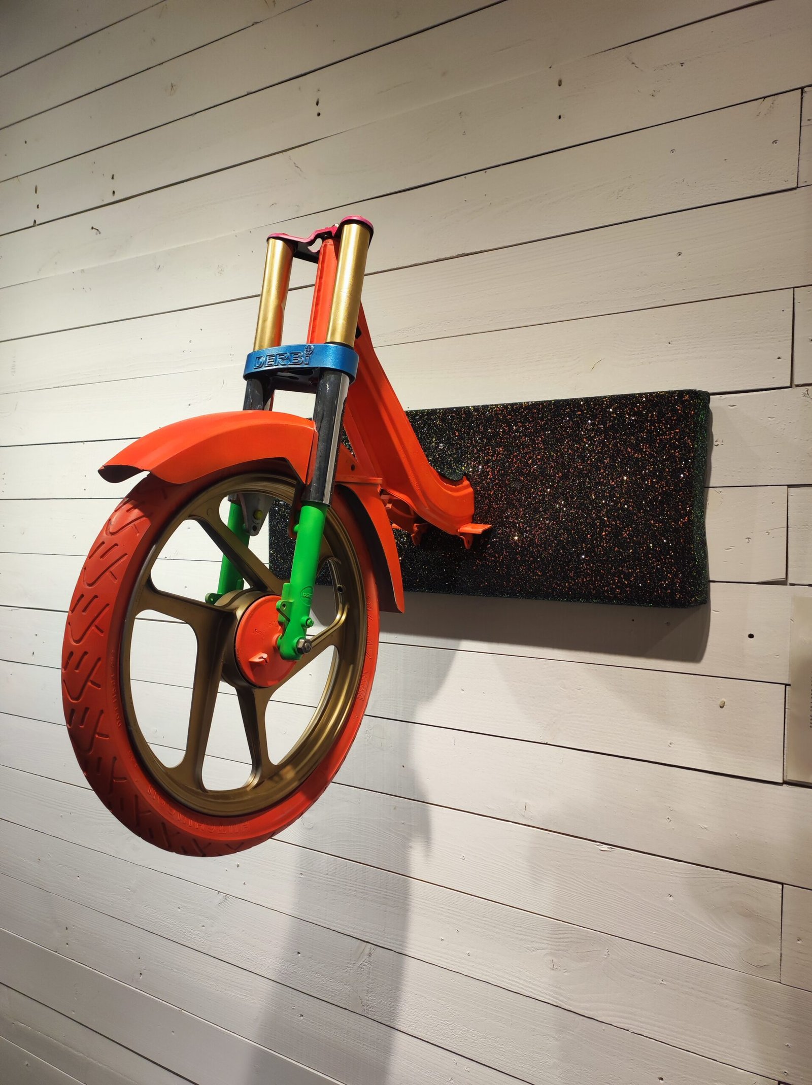 La obra nace de una visión ecléctica que busca trascender lo ordinario. Al partir la motocicleta por la mitad, el artista no destruye el objeto; lo libera. Esta escultura inmortaliza el movimiento, permitiendo que la energía de la carretera repose en un formato estético que eleva cualquier entorno. Es, sin duda, una pieza que redefine lo que entendemos por escultura de lujo.